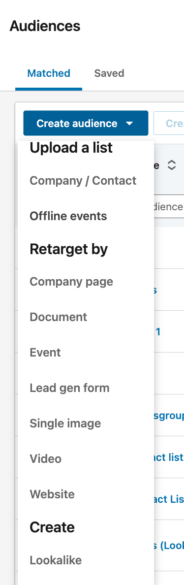 • How to build custom or matched audiences on LinkedIn