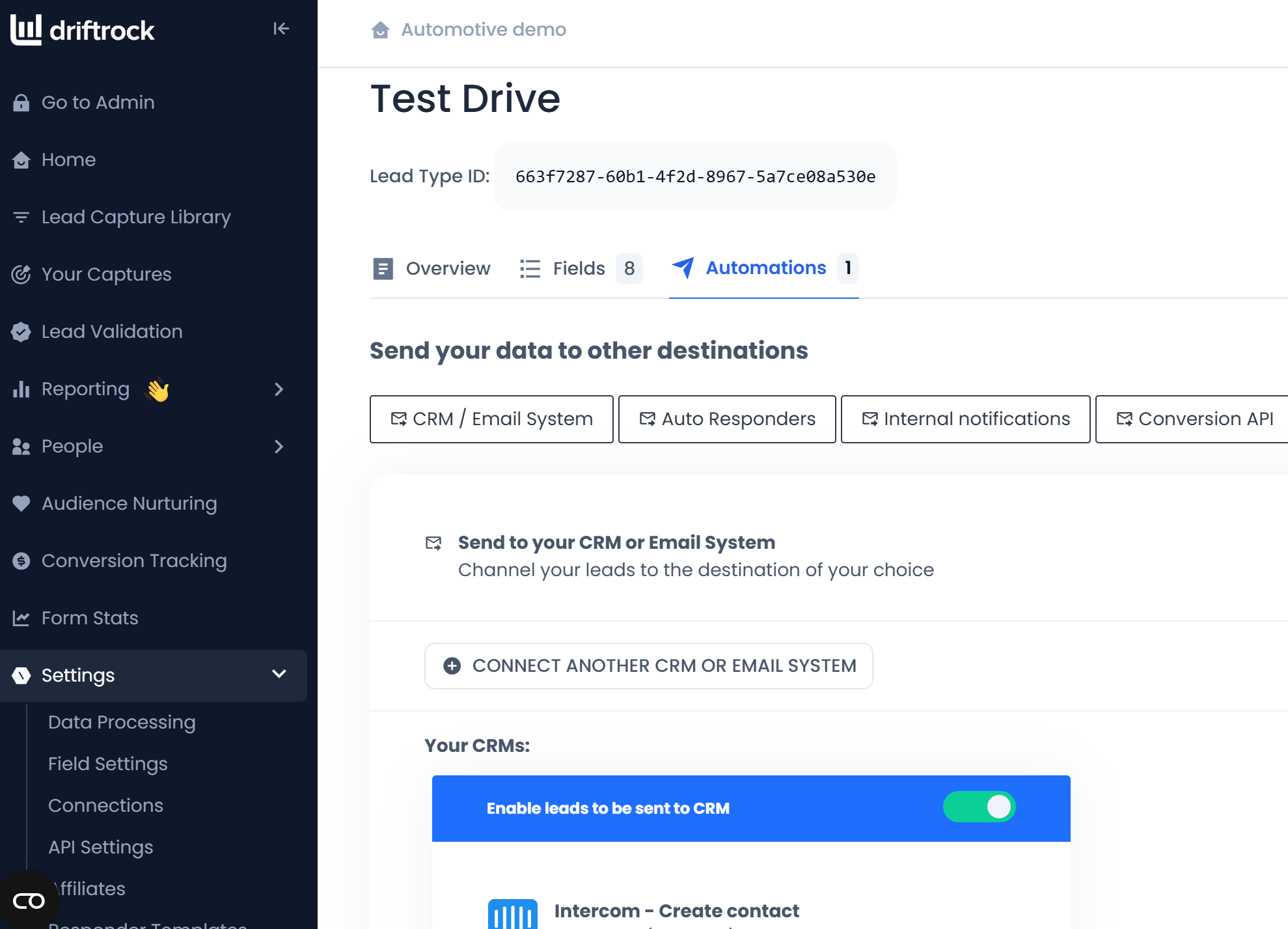 Navigate to Settings: Go to the Lead Types section in your Driftrock account.